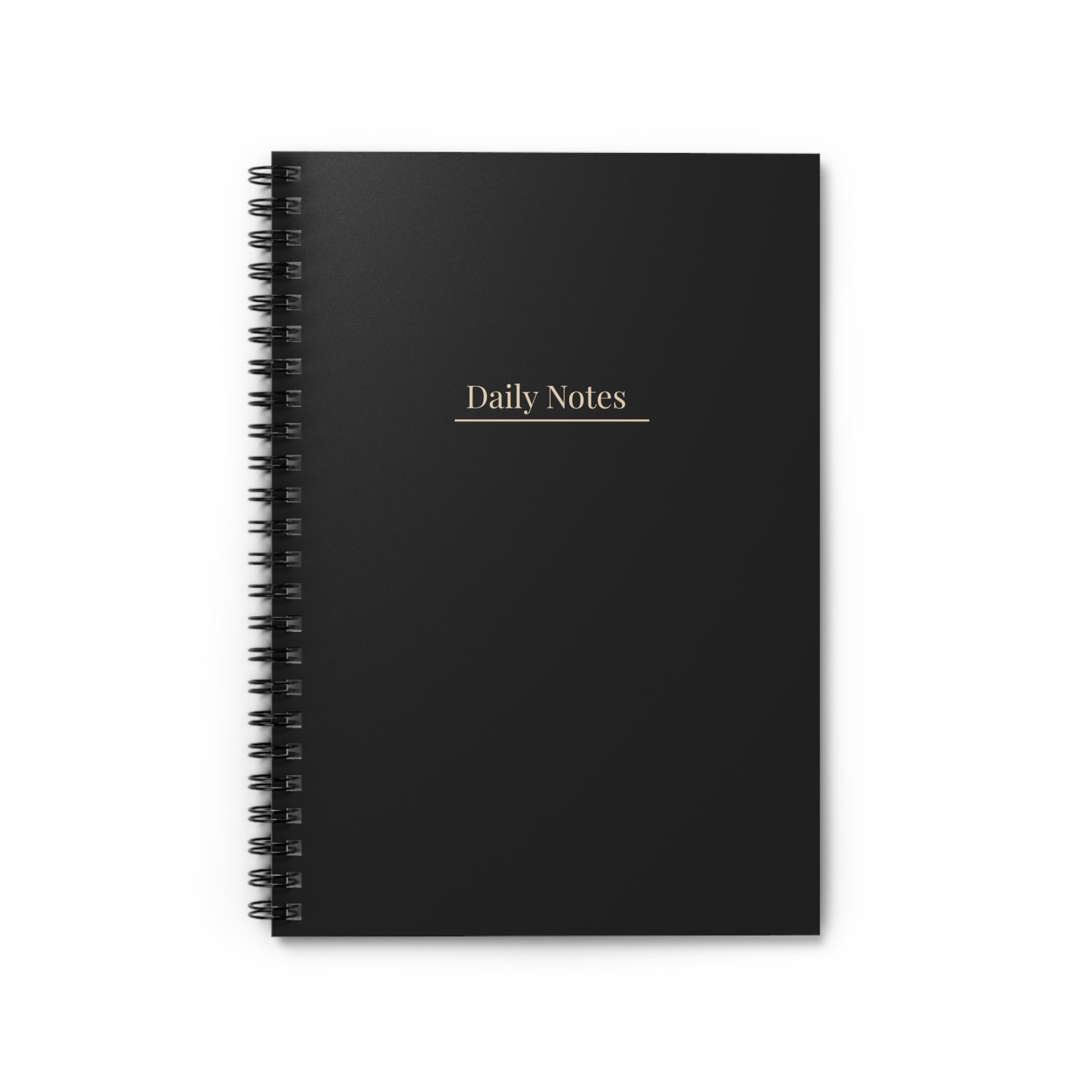 Designed for focus, clarity, and everyday structure, the Daily Notes Journal blends minimalist design with reliable functionality. With its deep charcoal cover and clean typography, this spiral-bound notebook makes an ideal companion for professionals, students, or anyone who values thoughtful organization.